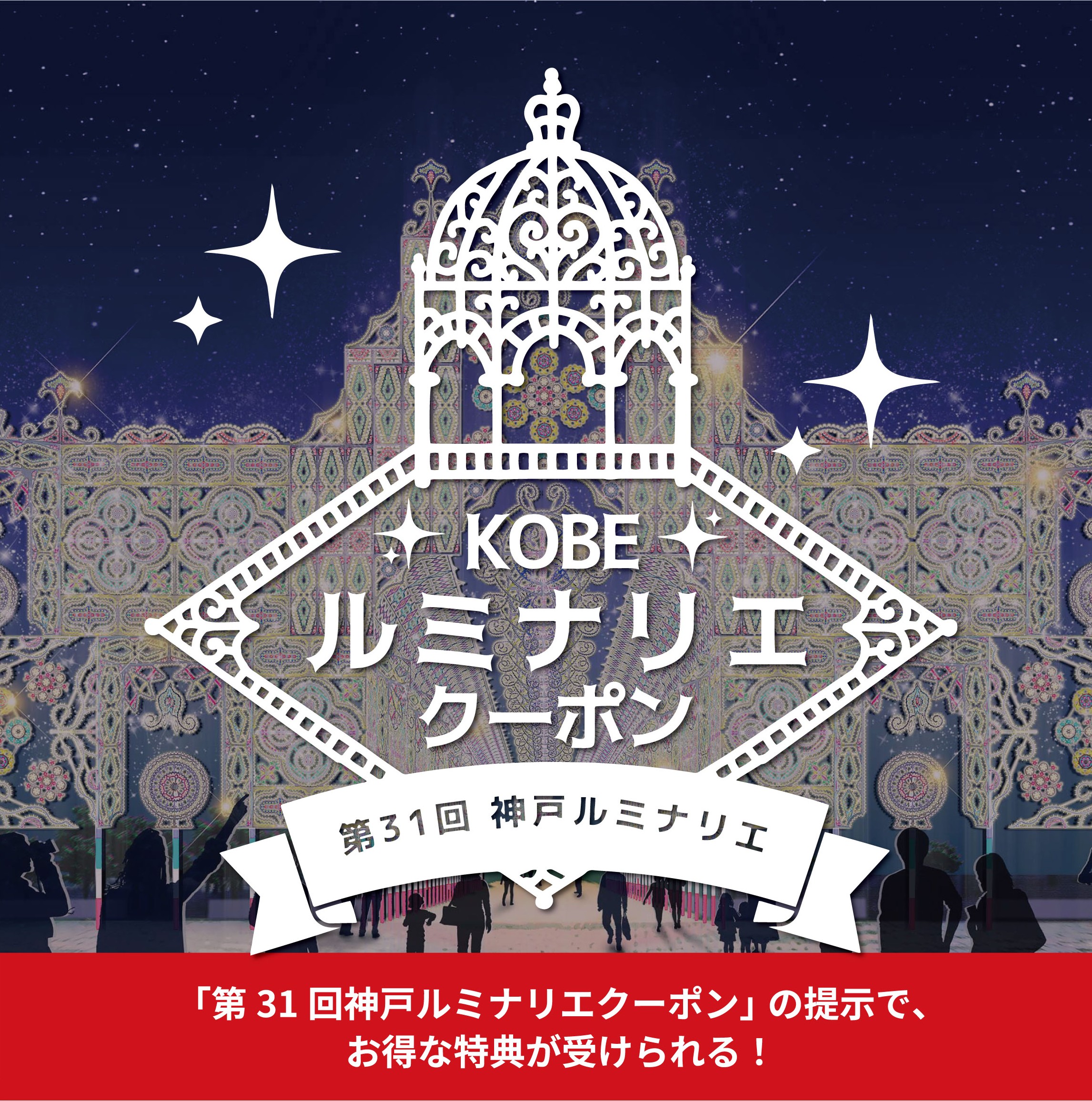 神戸ルミナリエ有料エリア特別鑑賞券、募金及び有料エリア入場時に配布する「Thank youカード」に印刷された「神戸ルミナリエ クーポン」ロゴをクーポン参画店舗で提示すると、特典や割引が受けられるキャンペーンを実施します … 続きを読む 「神戸ルミナリエクーポンキャンペーン」で神戸のまちをお得に楽しもう!